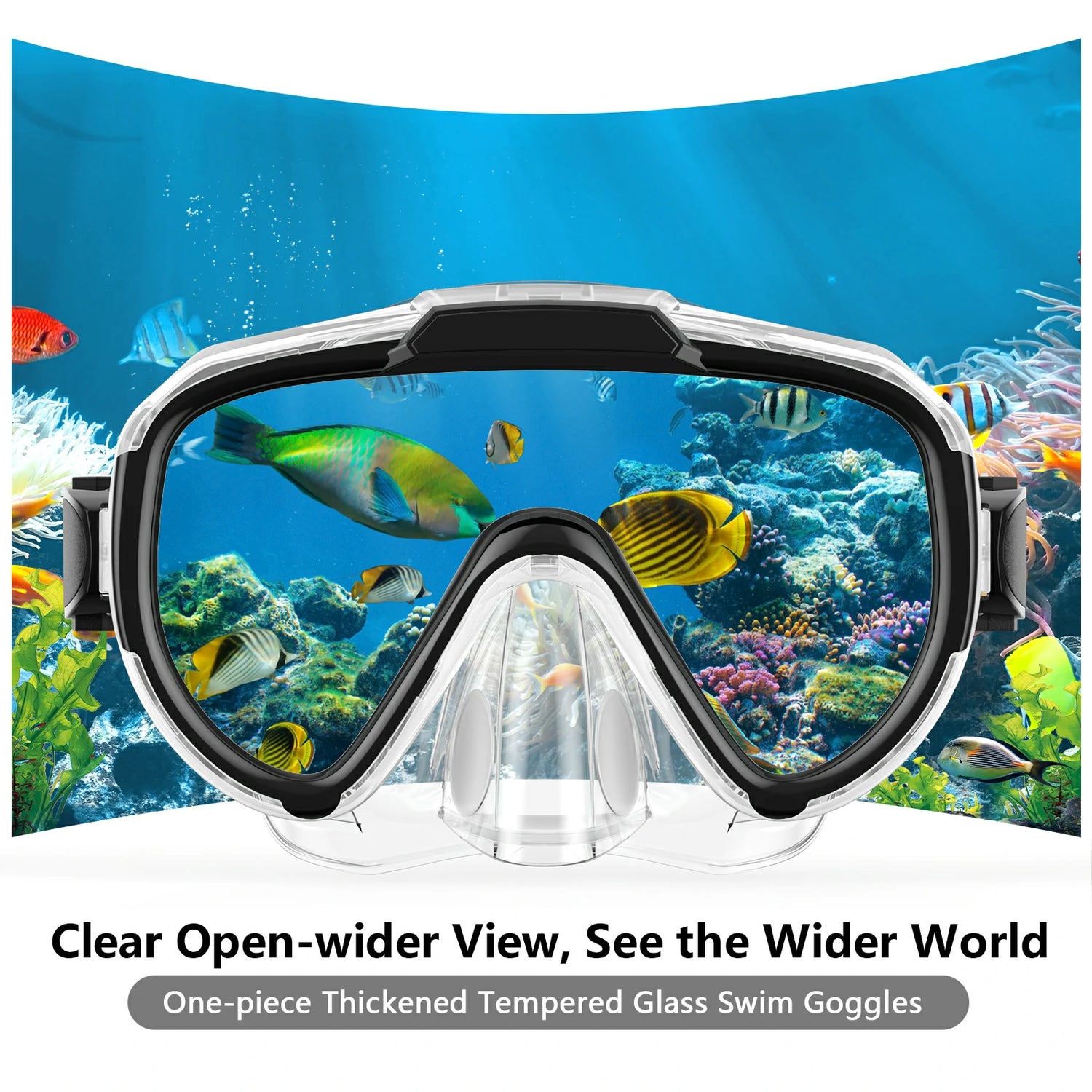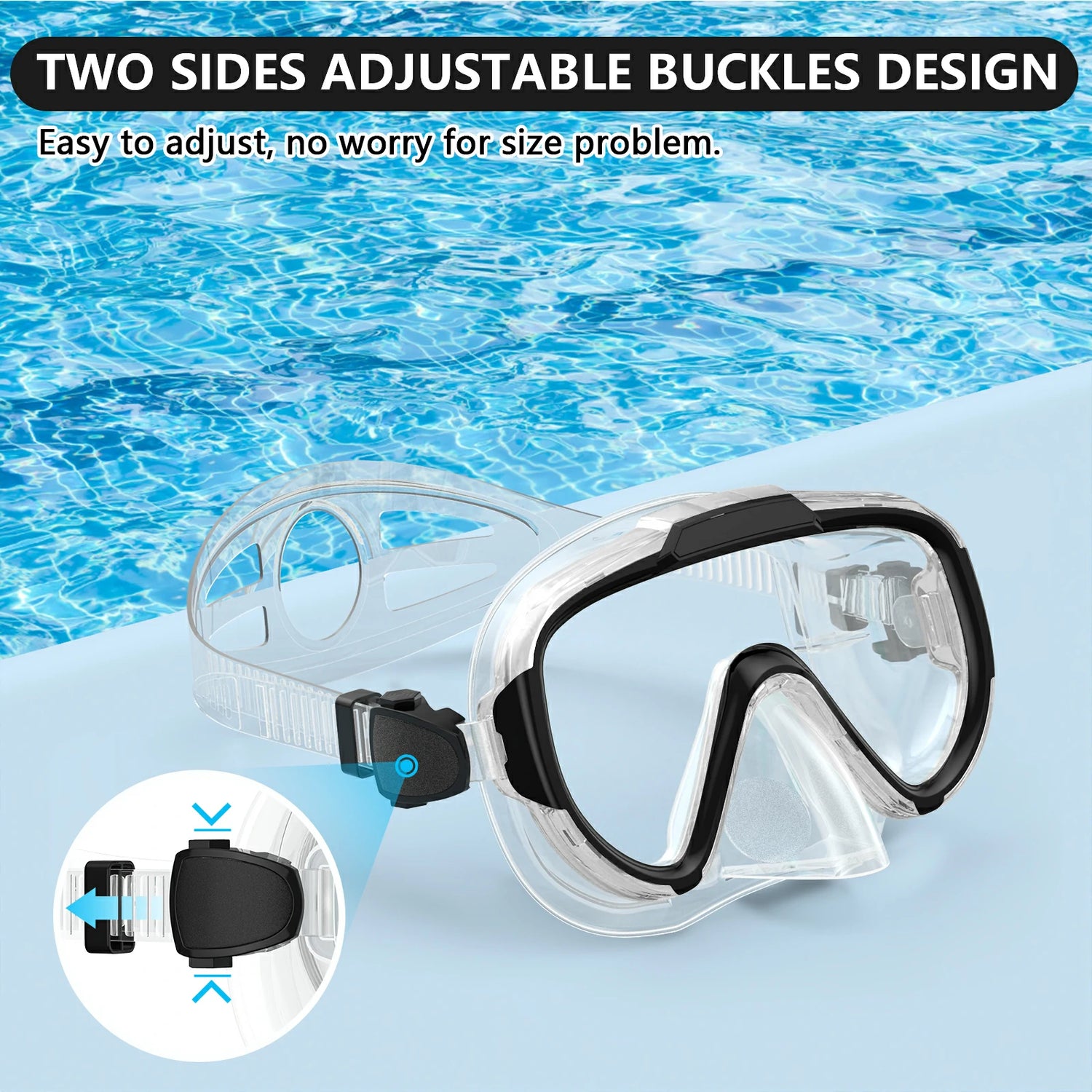 Based on the hydrodynamic shape design, this goggles use the elastic food-grade liquid silicone, which makes the goggles fit most face shapes comfortably and reduce facial resistance. And the silicone skirt makes sure your face fully absorbed with the mask, so you don't have to worry about water leaking. The adjustable buckles on both sides help you keep the diving mask securely in place without slipping. And the unisex design is suitable for both men and women.